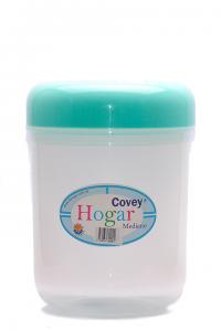 Fabricados en material muy resistente, irrompible. Traslucidos que permite ver lo que contienen. Tapas color, en tres tamaños.