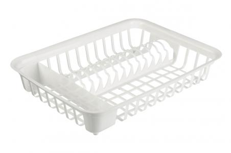 Escurridor de vajilla con capacidad para 13 platos y espacio para cubiertos. De fácil limpieza.