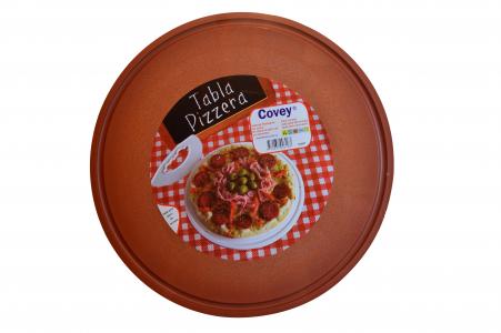 Tabla pizzera de plástico redonda, de material super resistente. Ideal para pizzas, picadas, lemheyun, etc. Con canaleta contenedora de líquidos. Presenta un pie en su base el cual permite llevar directamente a la mesa. Antihongos. Higiénica. No absorbe olores ni humedad. Superficie antideslizante. Apta para lavavajillas y microondas. Fácil de lavar.