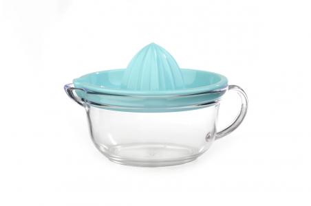 Línea Cristalline. Fabricado en plástico símil cristal. Jarrita con 450cc. de capacidad. Exprimidor de tamaño mediano, con buen escurrido. En colores vivos que alegran la cocina.